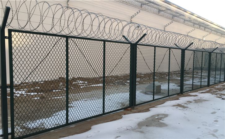 監獄鋼網墻又稱作監獄防護網或監獄護欄網,主要是采用高強度的刀片刺網與普通防護網的結合,由Y型柱,加強型焊接網片,安全防盜連接件和刀片刺網組成。刀片刺網是星宇推出的一種新型防護網,由銳利尖角鍍鋅鋼板或不銹鋼薄板做刀片,鋼絲做芯線組合而成的防護器材。 監獄護欄網,刀片刺網具有嚇阻、防攀爬等效果,材質堅硬,高強度,造型設計獨特,不便觸摸,因而能達到極好的防護隔離效果。監獄護欄網還具有施工簡便,經濟又實用等優點。